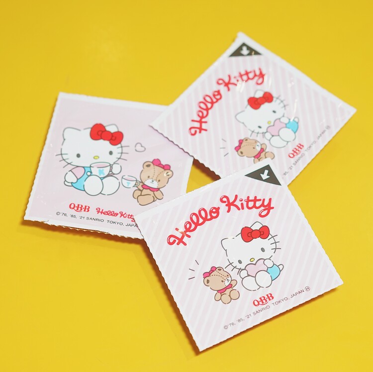 산리오 오리지널 캐릭터인 헬로키티 모양의 치즈: 귀여운 헬로키티 모양의 치즈가 랜덤으로 들어있어 모으는 재미가 있는 치즈예요.