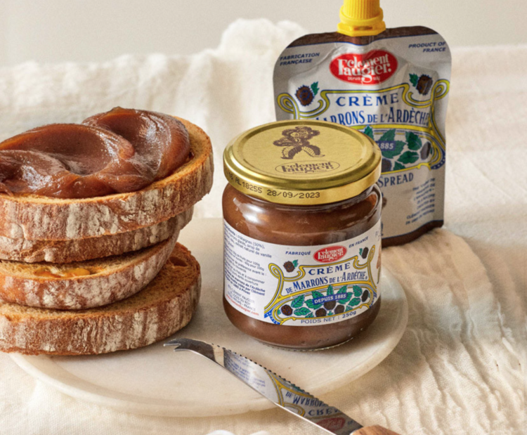 제품명 : 체스트넛 스프레드 / 원산지 : 프랑스 / 식품의 유형 : 땅콩 또는 견과류 가공품 / 제조원 : CLEMENT FAUGIER / 용량 : 220g(자이언트 튜브), 78g x 3(밤잼튜브 78g x 3) / 원재료명 및 함량 : 밤 50%, 설탕, 캔디드마롱(밤54.6%)1.1%,포도당시럽, 정제수, 천연바닐라추출물 / 보존기준 : 직사광선을 피하고 서늘한 곳에 보관(개봉 후 냉장보관, 15일 이내 섭취) / 유통기한 : 제품 뚜껑의 표시일까지(일/월/년 순) / 포장재질 : 용기-유리, 뚜껑-철