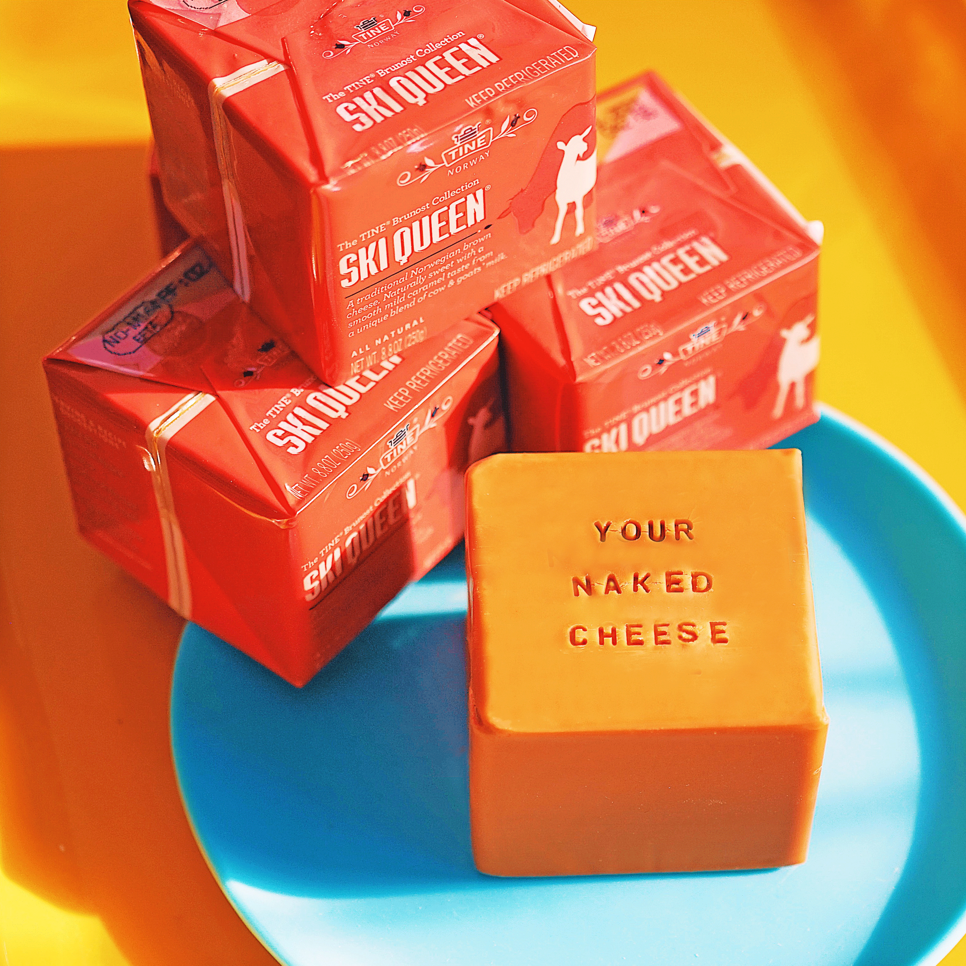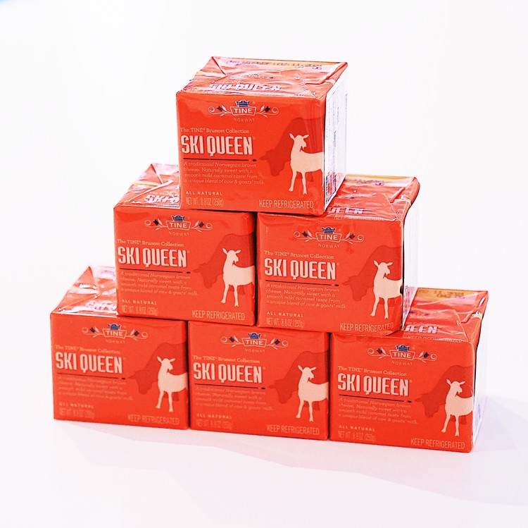 노르웨이의 특산품 브라운치즈: 브라운치즈는 150년이 넘는 역사를 가진 노르웨이 전통 치즈에요. 유청을 장시간 카라멜라이징하고 크림을 더해 만든 갈색 빛깔의 브라운치즈는 짭잘한 맛과 달콤한 카라멜 맛이 묘하게 어우러진 매력적인 치즈입니다. 맛 외에도 브라운치즈가 가진 큰 매력은 바로 식감이에요. 혀에 닿는 피넛버터 같은 감촉, 녹진한 식감은 한번 맛보면 중독될만한 브라운치즈의 치명적인 매력입니다.