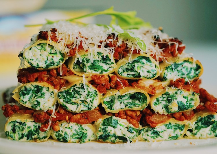 식상한 파스타에 질렸다면: 카넬로니는 튜브형 파스타 중 가장 큰 크기를 자랑하는 파스타에요. 라자냐와 비슷한 컨셉을 가진 파스타로, 속 재료를 채워 오븐에 굽는 형태로 조리하는 것이 일반적입니다. 어떻게 활용하느냐에 따라 다양한 형태의 플레이팅이 가능한 매력적인 파스타입니다.