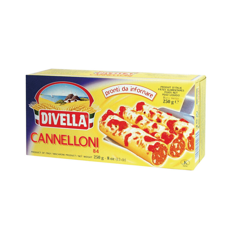 제품명 : 깐넬로니 / 원산지 : 이탈리아 / 식품의 유형 : 건면 / 제조원 : F.DIVELLA S.P.A / 용량 : 250g / 원재료명 및 함량 : 세몰리나 듀럼밀 100% / 보관방법 : 직사광선을 받지 않는 실온에 보관 / 유통기한 : 별도표기일(일,월,년순)까지