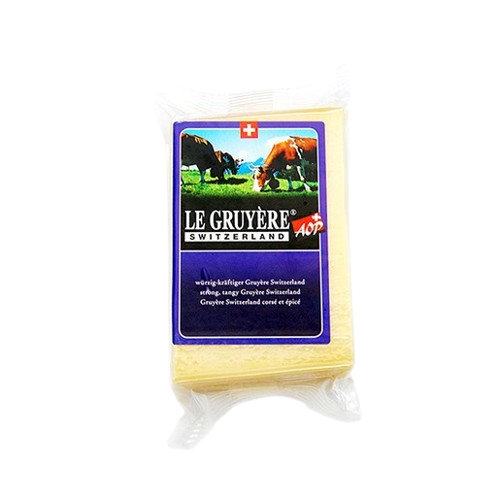 제품명 : 그루이어 (Gruyere) / 원산지 : 스위스 / 식품의 유형 : 자연치즈 / 제조사 : Hardegger Kase AG / 용량 : 200g / 원재료명 및 함량 : 우유(비살균우유), 식염, 젖산스타터컬쳐, 렌넷 우유함유 / 포장재질 : 폴리아미드, 폴리에틸렌 / 보존기준 : 냉장보관(0℃~8℃) / 보관상 유의사항 : 개봉 후 냉장보관하거나 빨리 드시기 바랍니다. / 유통기한 : 제품 별도표기 (일-월-년순)